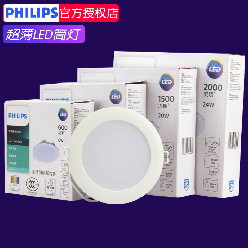 飞利浦led筒灯闪耀3.5W嵌入式2.5寸薄款防雾开孔8公分天花灯洞灯